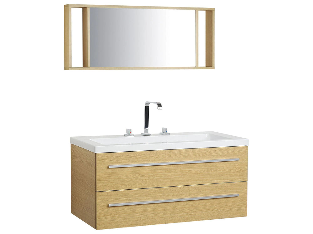 Bathroom Vanity Unit Beige and Silver 2 Drawers Mirror Modern Beliani