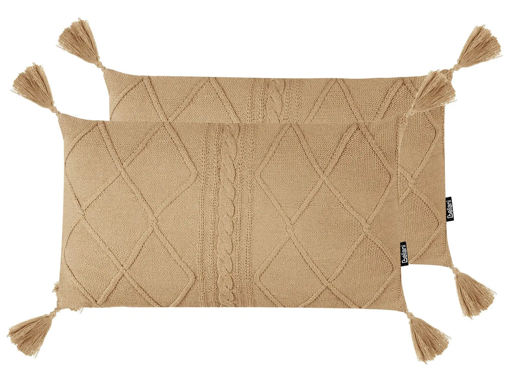 Set of 2 Scatter Cushions Beige Cotton 30 x 50 cm Throw Pillows Cotton Braided Pattern Cover Beliani is backordered and will ship as soon as it is back in stock.