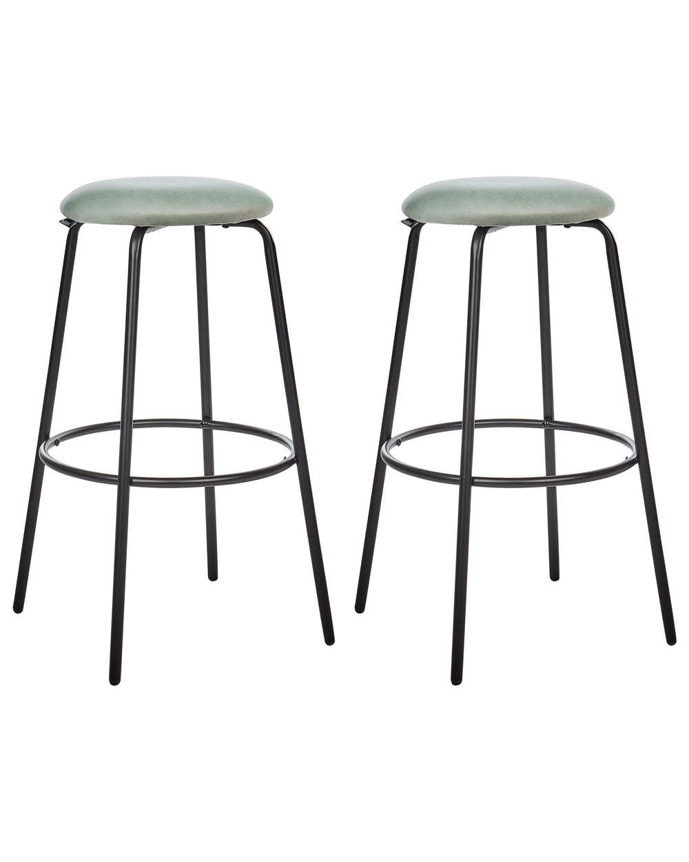 Set of 2 Bar Stools Mint Green Velvet with Footrest Kitchen Island Chair Beliani