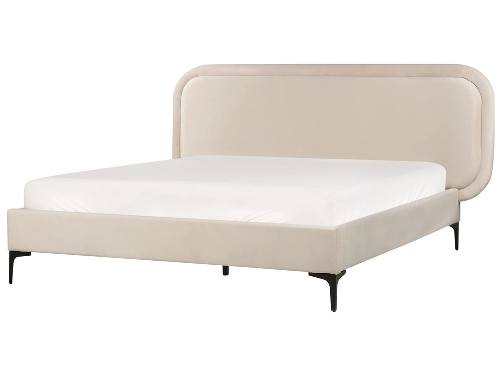 EU Double Size Bed Light Beige Velvet 4ft6 Upholstered Frame Headrest Beliani
