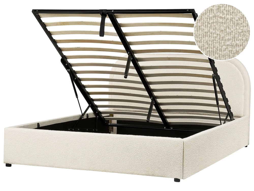 EU Double Size Bed Light Beige Boucle 4ft6 Upholstered Frame Headrest with Storage Beliani