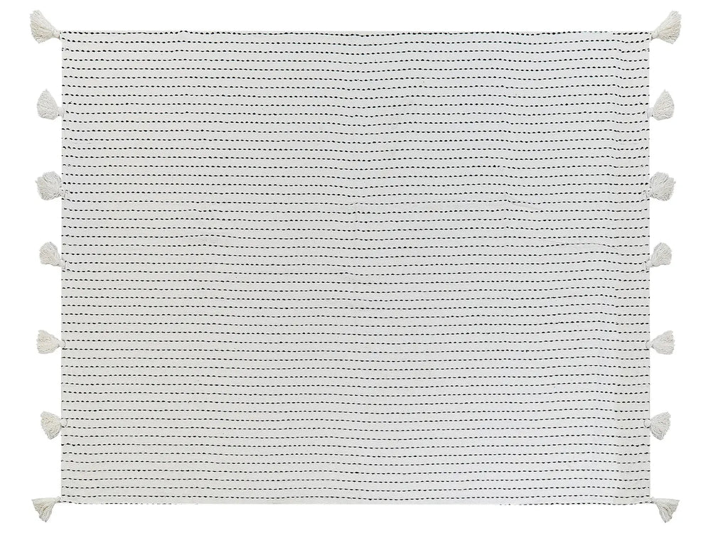Bedspread Off-White Cotton Fabric 150 x 200 cm with Tassels Decorative Throw Bedding Classic Design Bedroom Beliani