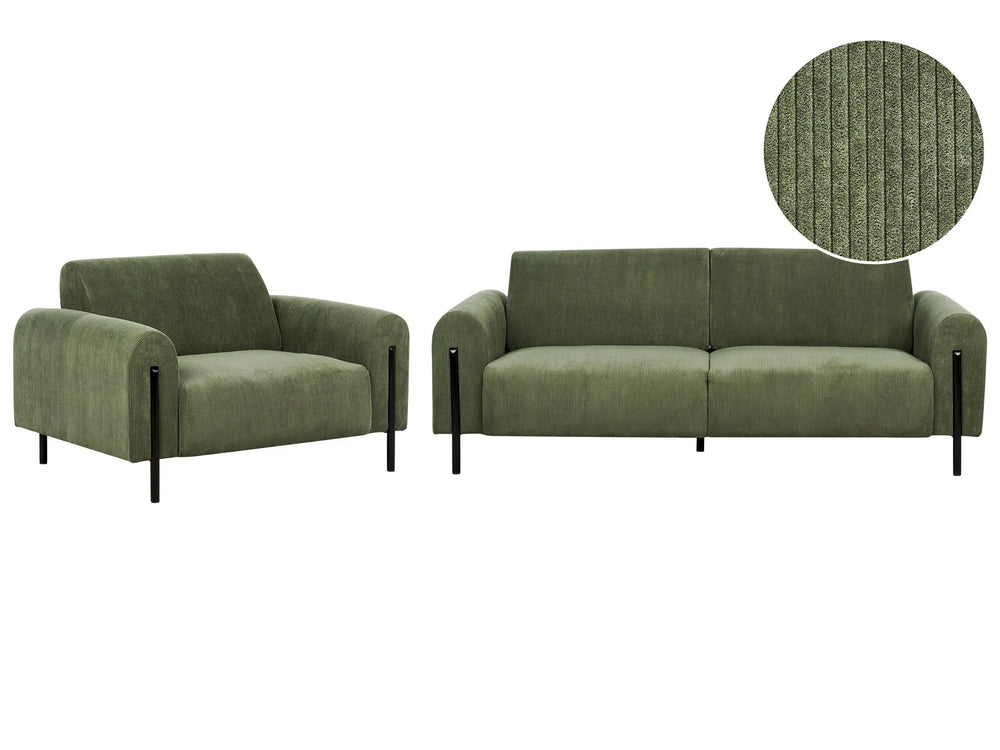 Living Room Set Green Corduroy Fabric Metal Legs 3 Seater Sofa Classic Couch Armchair Settee Adjustable Backrest Modern Living Room Beliani