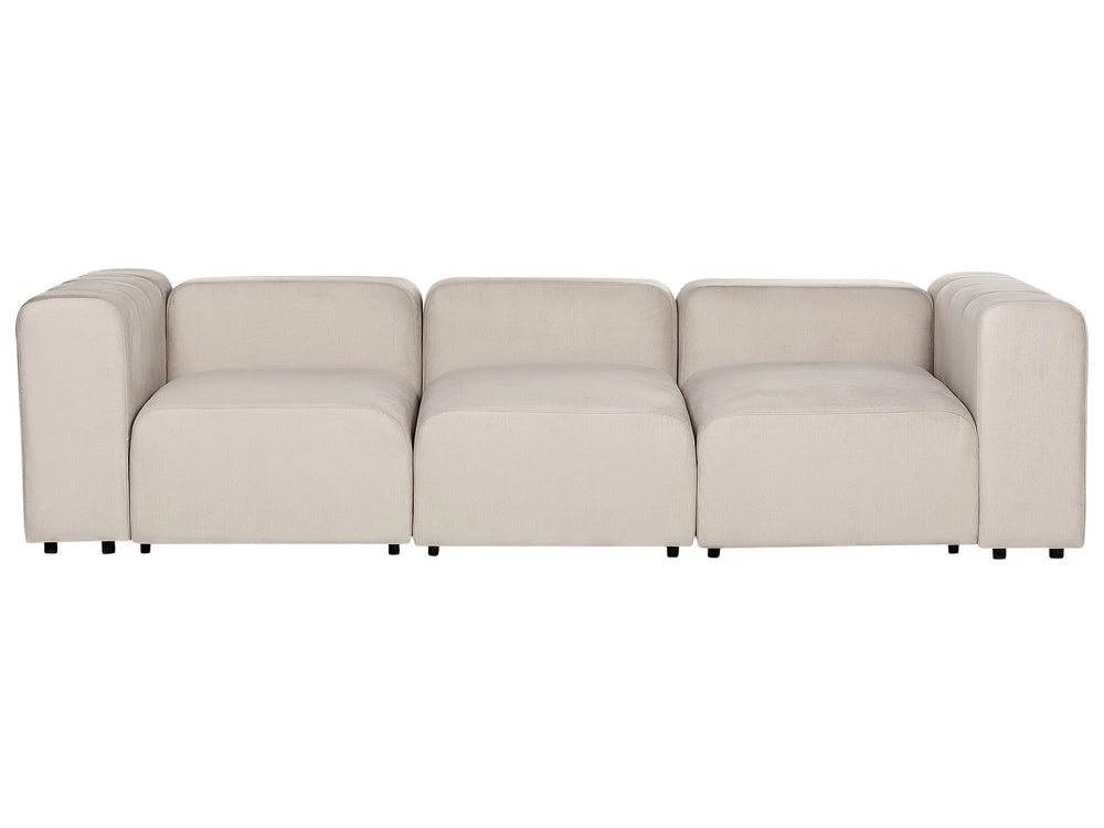 3 Seater Modular Sofa Beige Velvet Sectional Couch Sofa with Black Legs Modern Living Room Beliani