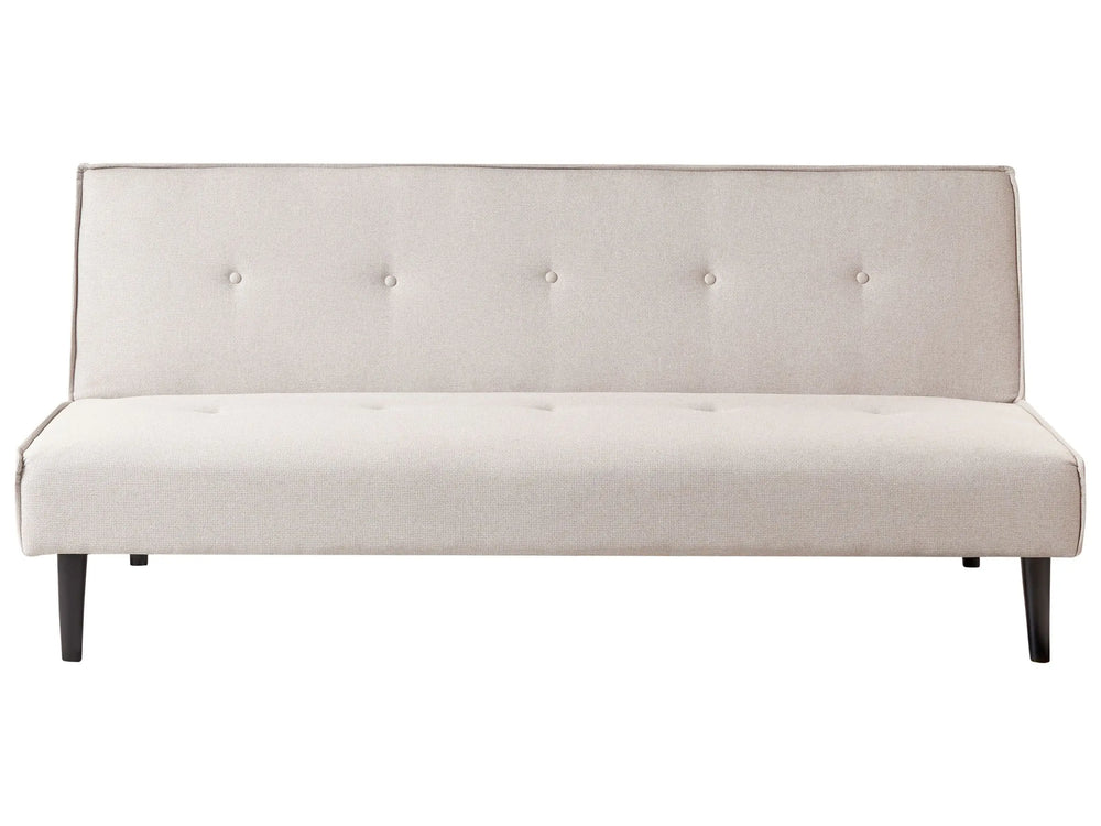 Sofa Bed Light Beige Fabric 3 Seater Buttoned Seat Click Clack Armless Adjustable Backrest Retro Traditional Design Beliani is backordered and will ship as soon as it is back in stock.