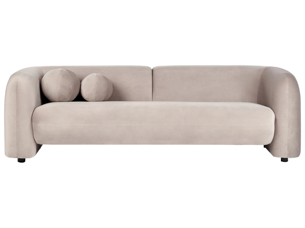 3 Seater Sofa Taupe Velvet Fabric Soft Nubby with Extra Throw Cushions Retro Glam Art Decor Style Beliani is backordered and will ship as soon as it is back in stock.