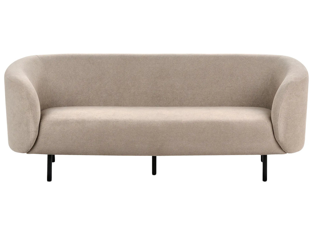 3 Seater Sofa Taupe Polyester Fabric Soft Textured Curved Design Black Legs Modern Art Decor Style Beliani