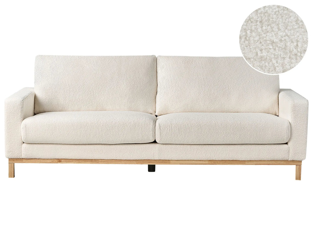 3 Seater Sofa White Boucle Living Room Modern Style Light Wood Legs Beliani