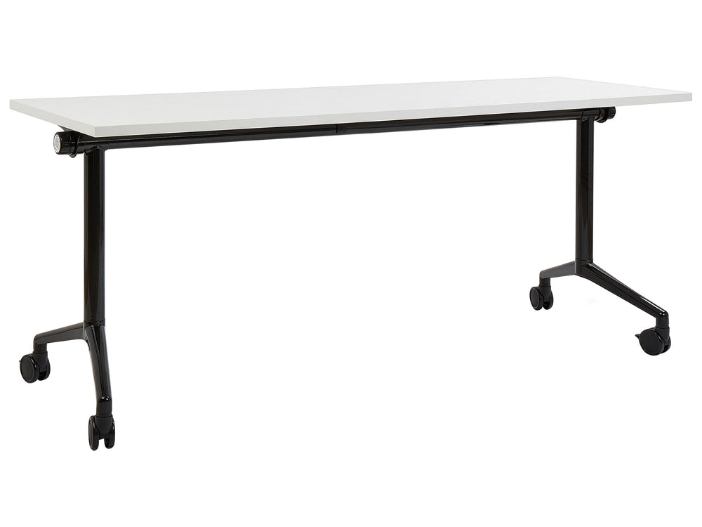 Folding Office Desk White and Black Metal Frame MFC Tabletop 180 x 60 cm Foldable Portable Mobile Table with Casters Modern Design Beliani