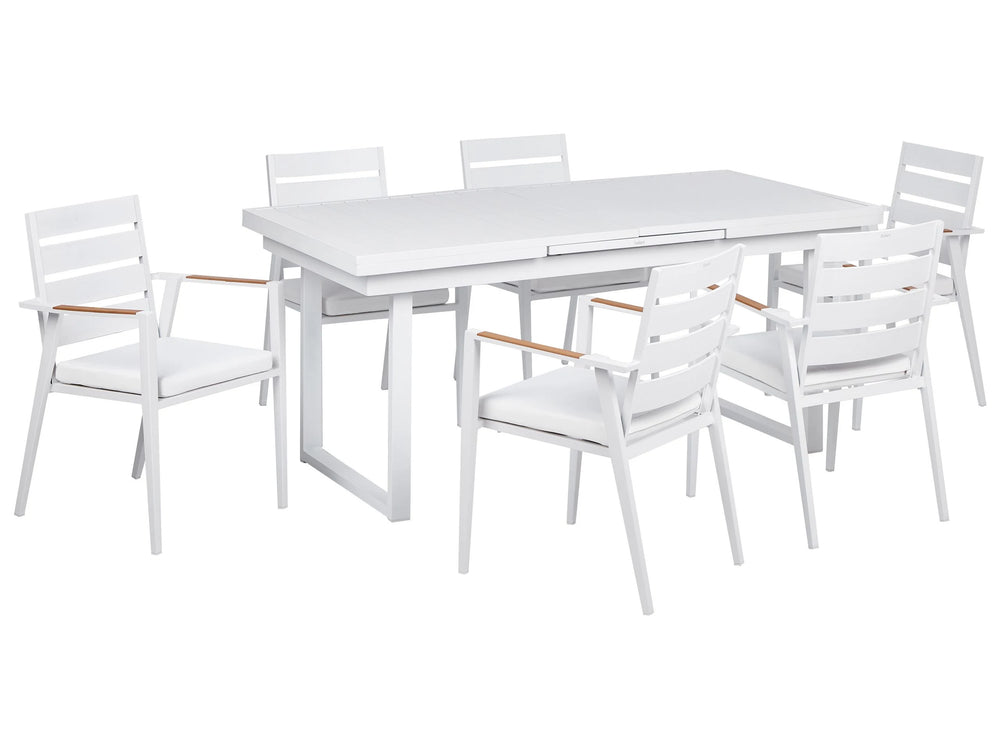 6 Seater Garden Dining Set White Aluminium Extending Table Chairs with Seating Pads Outdoor Beliani