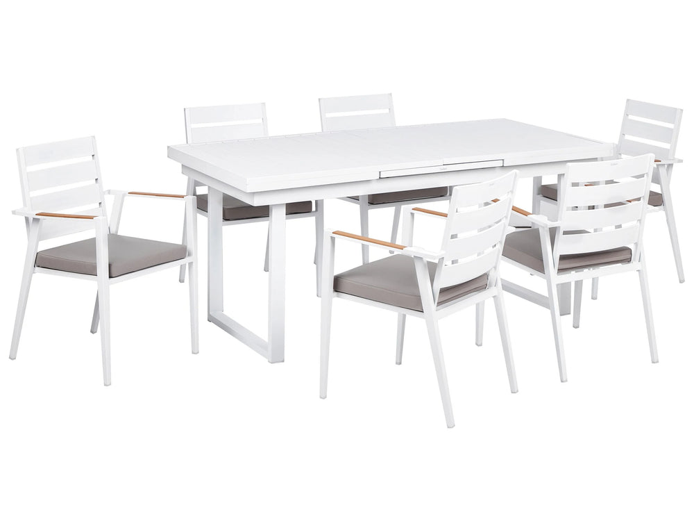 6 Seater Garden Dining Set Grey Aluminium Extending Table Chairs with Seating Pads Outdoor Beliani