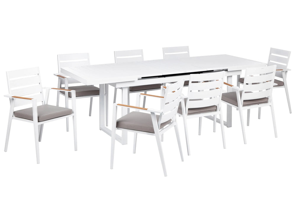 8 Seater Garden Dining Set Grey Aluminium Extending Table Chairs with Seating Pads Outdoor Beliani