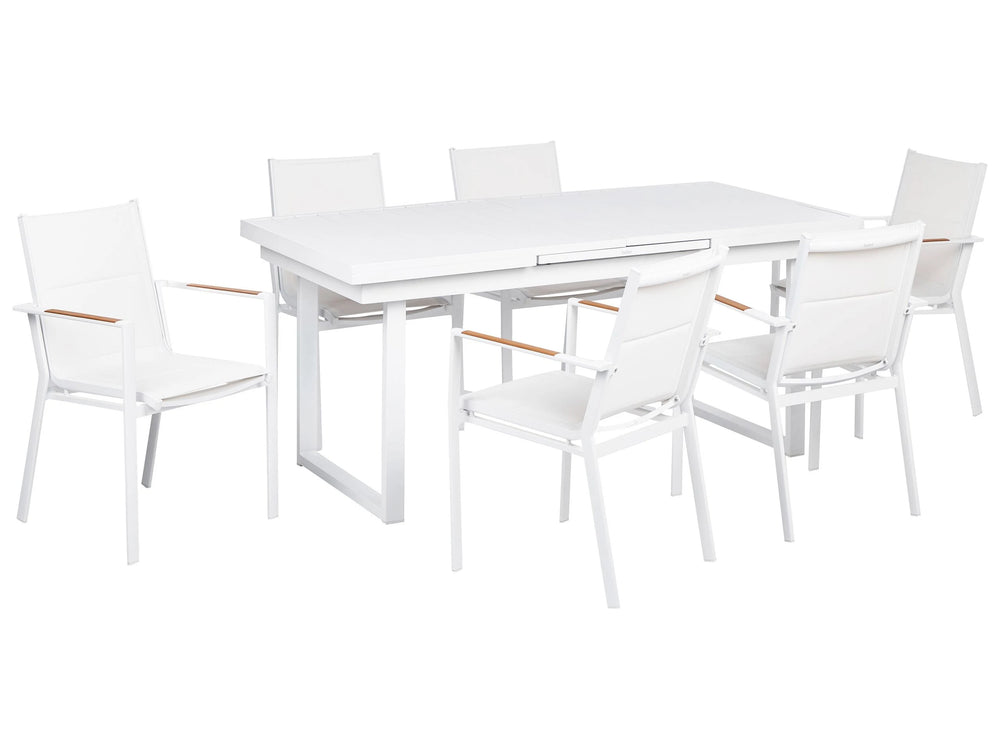 6 Seater Garden Dining Set White Aluminium Extending Table Chairs Outdoor Modern Design Beliani