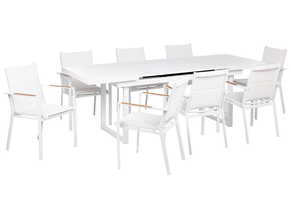 8 Seater Garden Dining Set White Aluminium Extending Table Chairs Outdoor Modern Design Beliani is backordered and will ship as soon as it is back in stock.