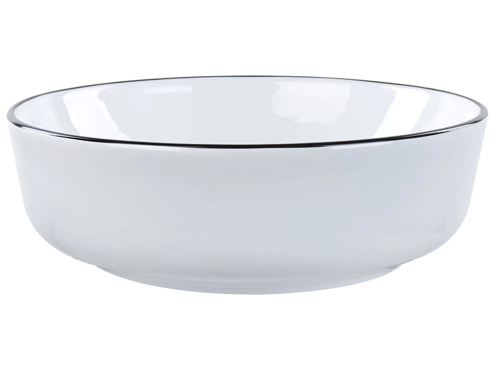 Countertop Wash Basin White with Black Rim Glossy Ceramic 420 mm Round Bathroom Sink Beliani