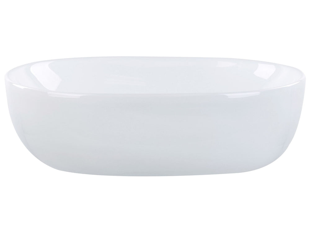 Countertop Wash Basin White Glossy Finish Ceramic 480 x 340 mm Oval Bathroom Sink Beliani