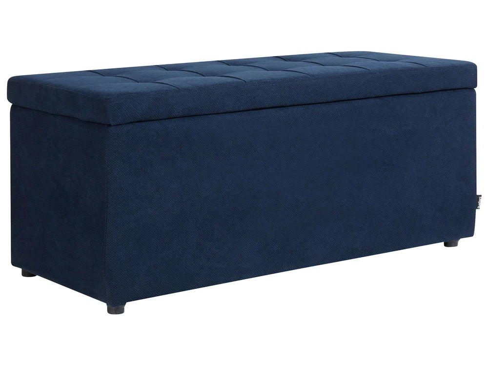 Ottoman Navy Blue 100 x 42 x 40 cm Polyester Fabric Upholstered Footstool Living Room Modern Style Beliani