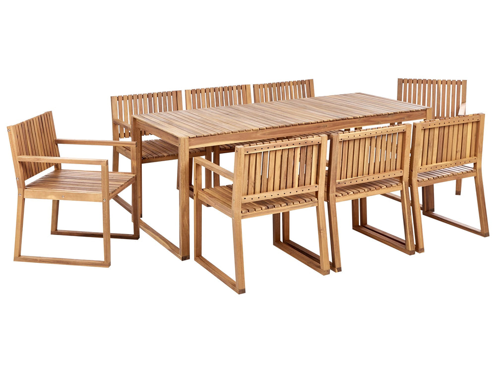 Garden Dining Set Light Certified Acacia Wood Table 8 Chairs Rustic Style Beliani
