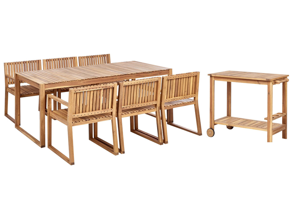 Garden Dining Set Light Certified Acacia Wood Table 6 Chairs Drinks Trolley Rustic Style Beliani