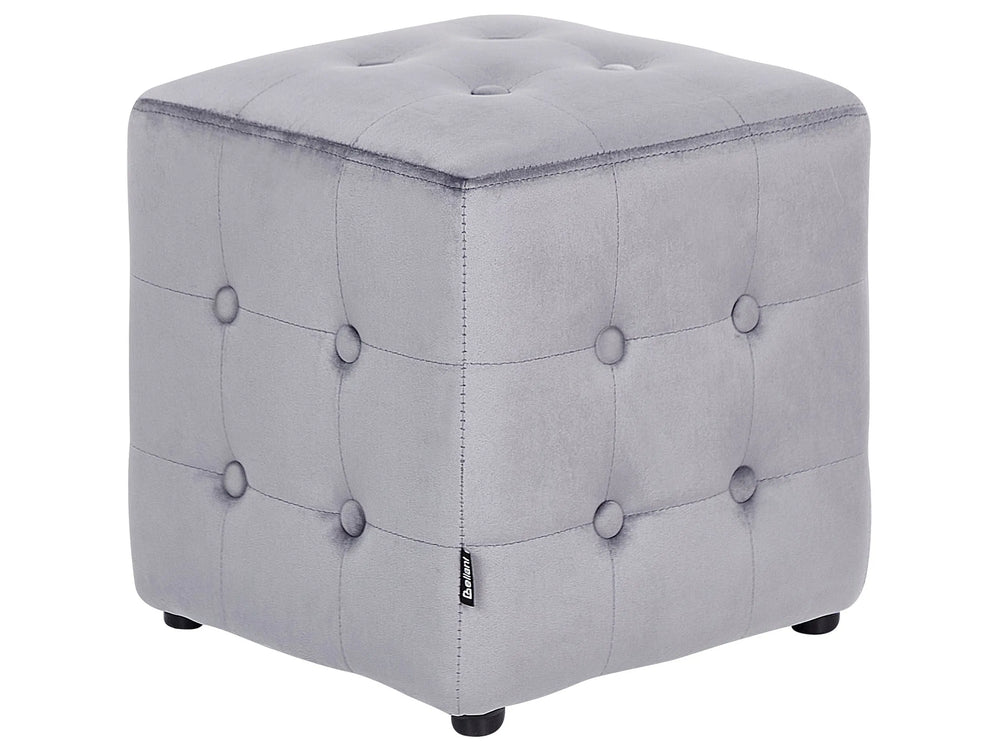 Footstool Grey Velvet Cube Pouffe Button Tufted Upholstery Beliani