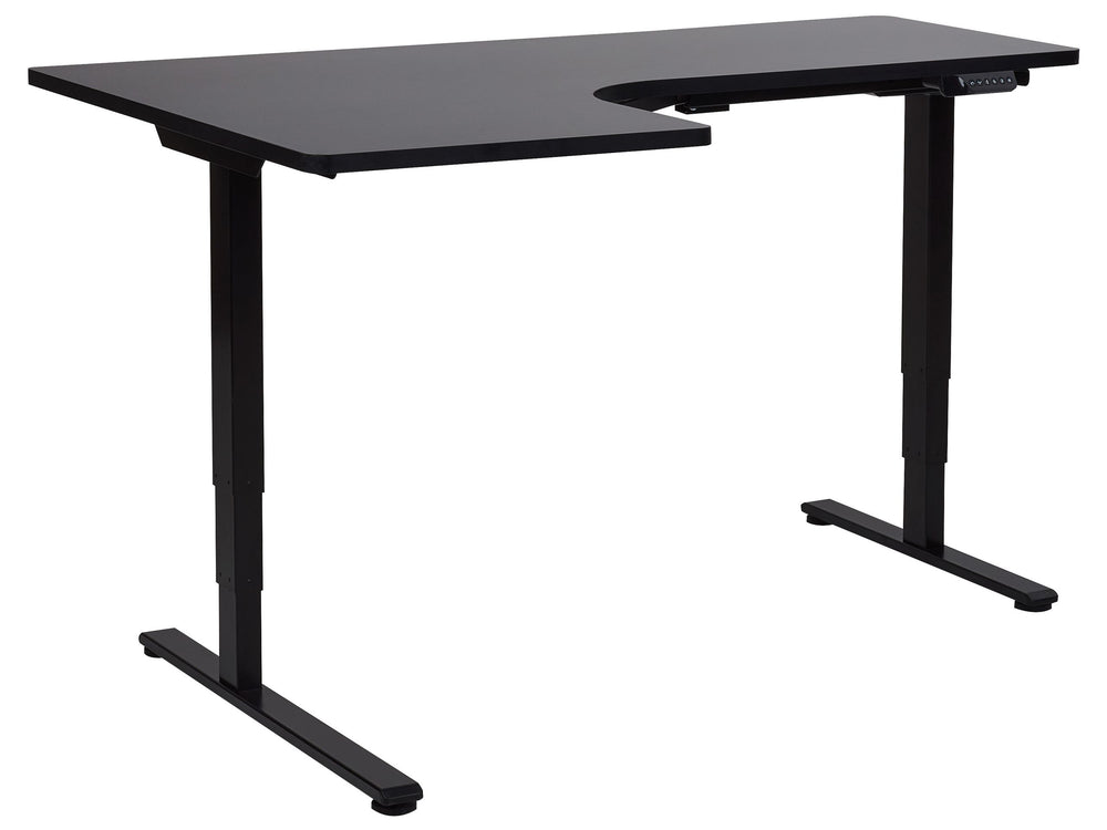 Electrically Adjustable Left Corner Desk Black Tabletop Black Steel Frame 160 x 59 cm Sit and Stand L-Shaped Modern Design Beliani