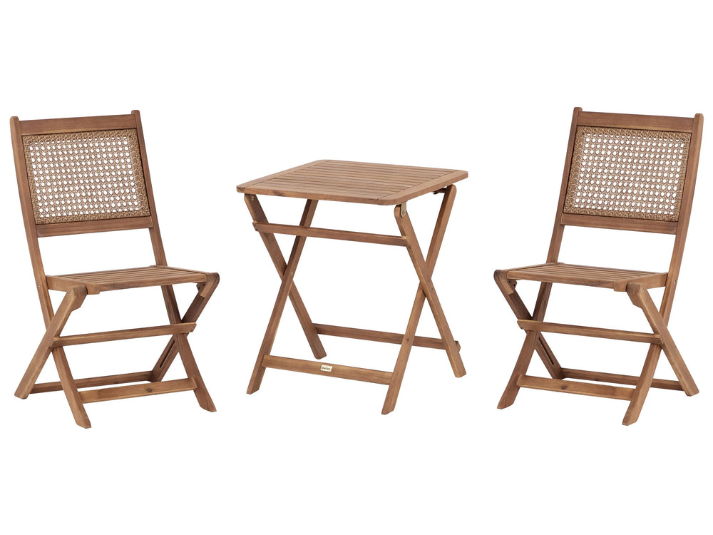 3 Piece Bistro Set Light Solid Certified Acacia 2 Chairs and Tea Table Folding Slatted Design Beliani