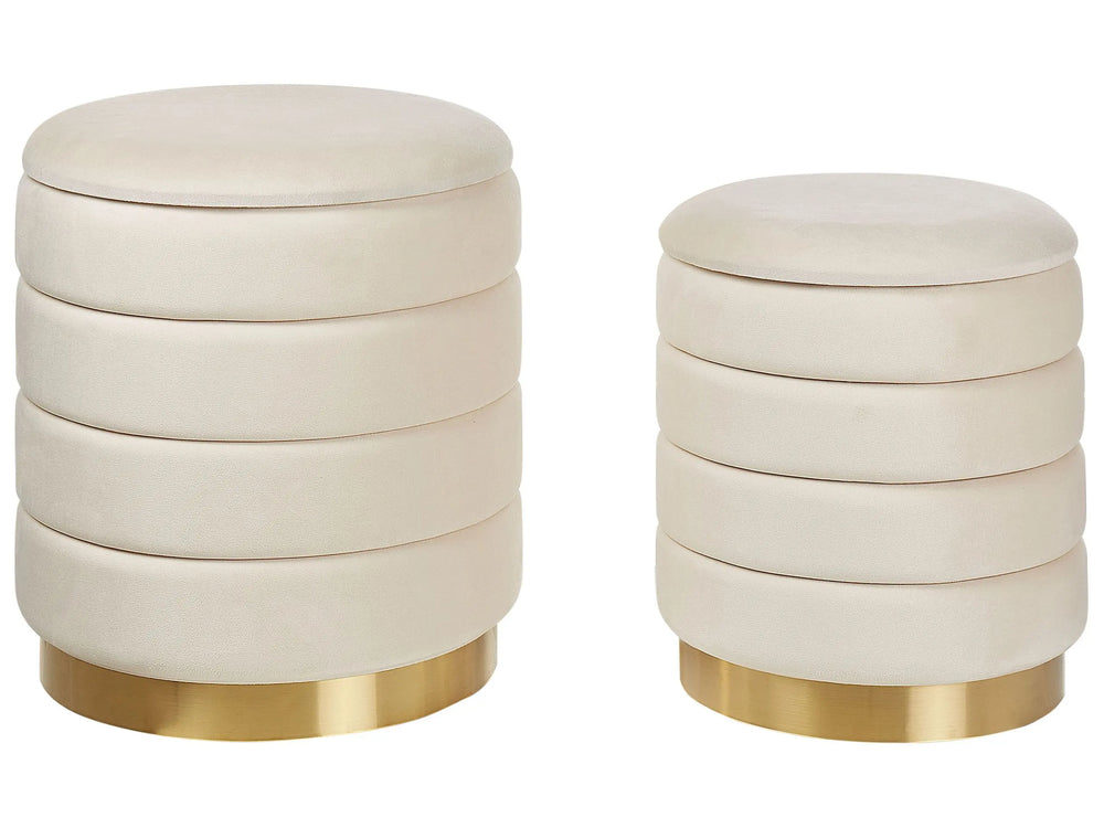 Set of 2 Storage Pouffes with Storage Light Beige Polyester Velvet Upholstery Gold Stainless Steel Base Modern Design Beliani