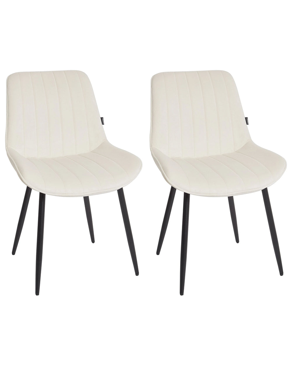 Set of 2 Dining Room Chairs Light Beige Armless Velvet Black Steel Leg Modern Design Dining Room Seating Beliani