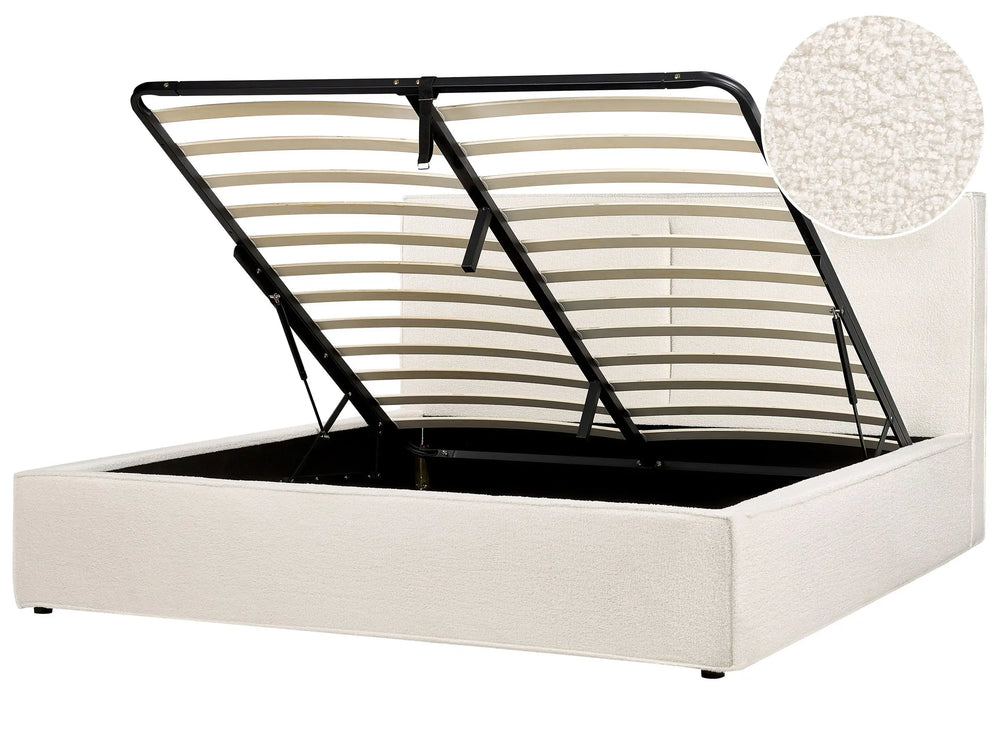 EU Super King Size Panel Bed 6ft Off-White Boucle Upholstery Storage Ottoman Slatted Frame Contemporary Modern Bedroom Beliani