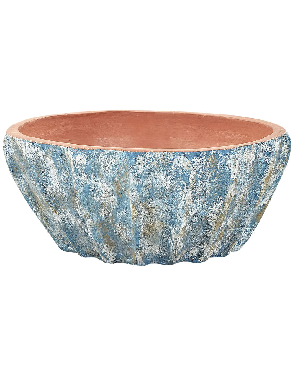 Plant Pot Blue Oval Terracotta 51 cm Outdoor Indoor Garden Living Room Accessories Beliani