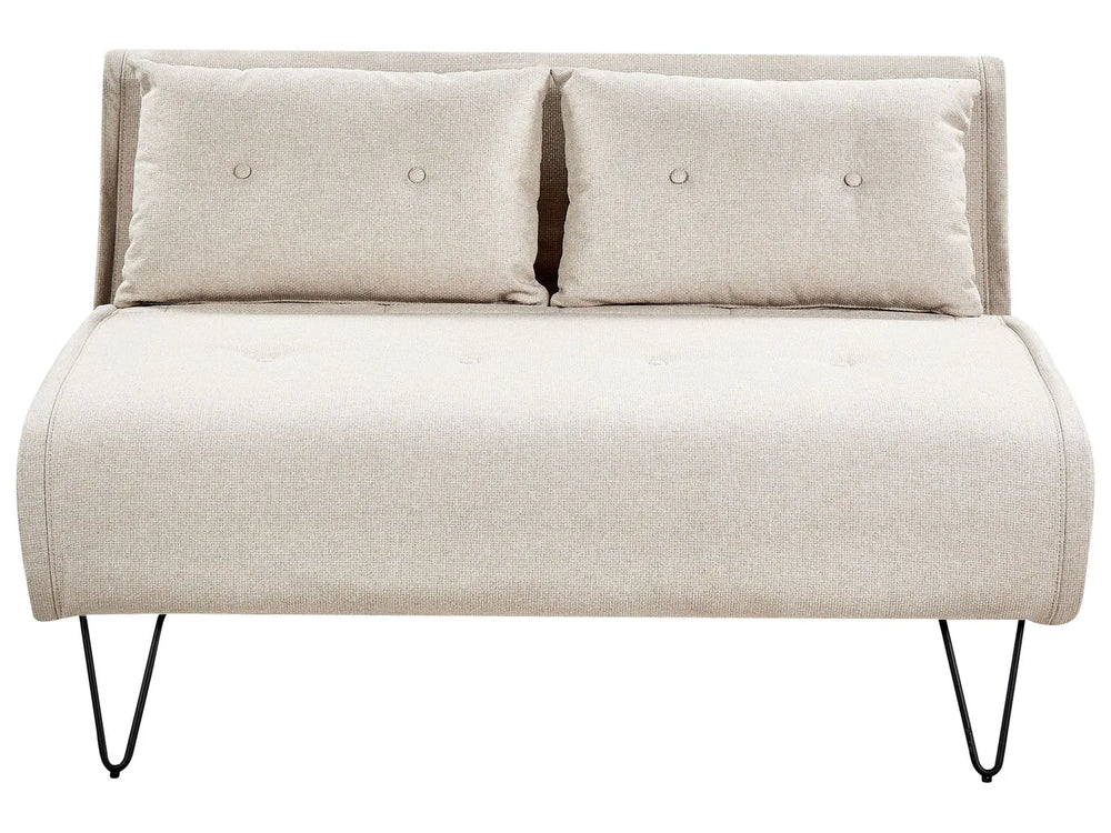 Sofa Bed Light Beige Polyester Fabric 2 Seater Fold-Out Sleeper Armless With 2 Cushions Metal Black Legs Glamour Beliani