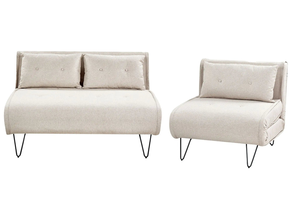 Living Room Set Light Beige Fabric Single and 2 Seater Sofa Bed with Cushions Metal Hairpin Legs Glamour Beliani