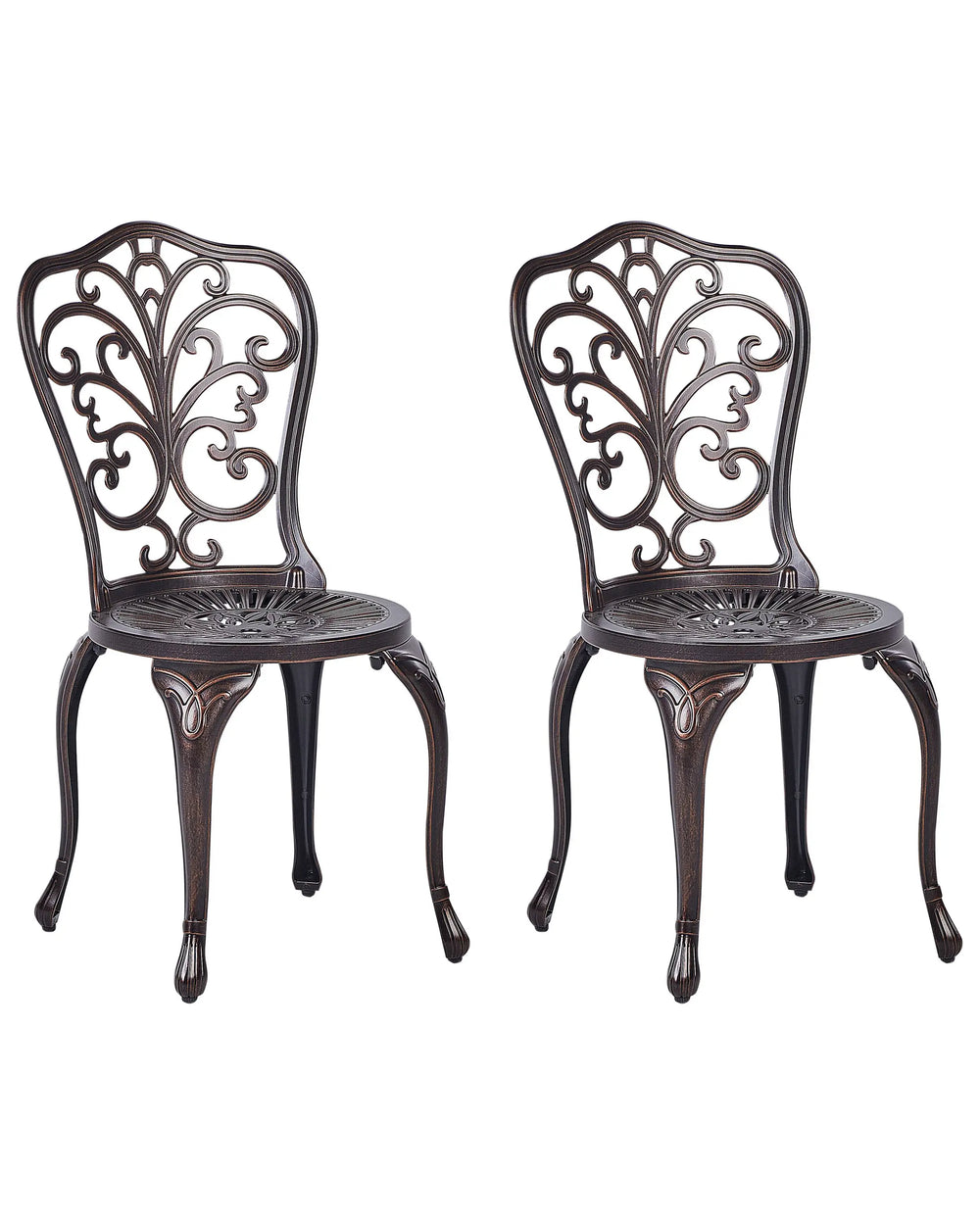 Set of 2 Garden Chairs Brown Aluminium Armless Bistro Dining Vintage Style Pattern Metal Beliani