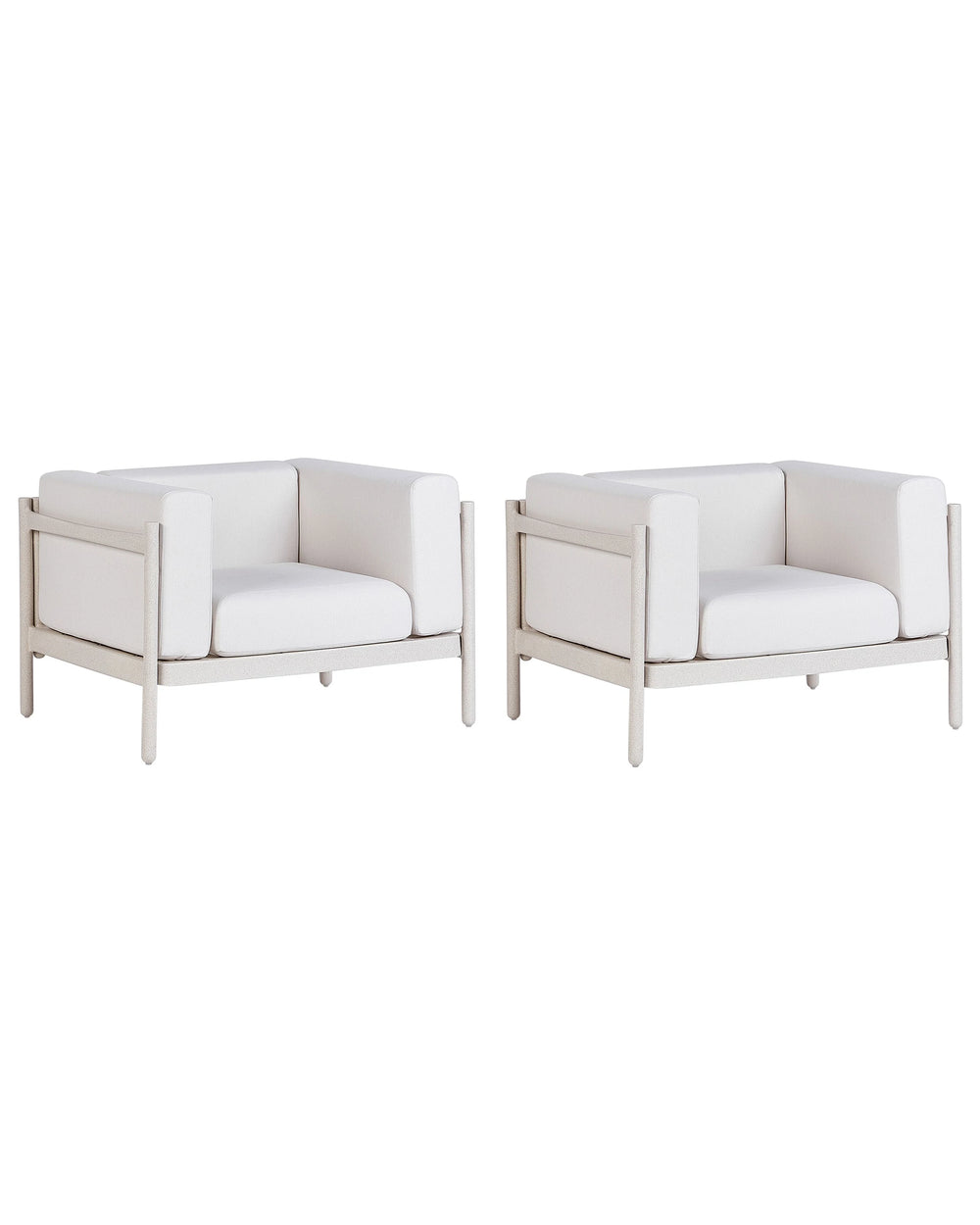 Set of 2 Garden Armchairs Light Beige Synthetic Frame Outdoor 2 Chairs Set with Cushions Modern Style Beliani