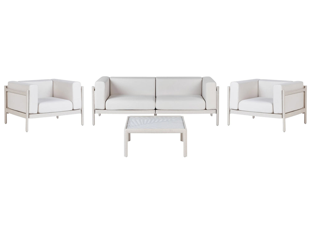 4 Seater Garden Sofa Set Light Beige Synthetic Frame Outdoor Coffee Table Armchairs 2 Seater Sofa with Cushions Modern Style Beliani
