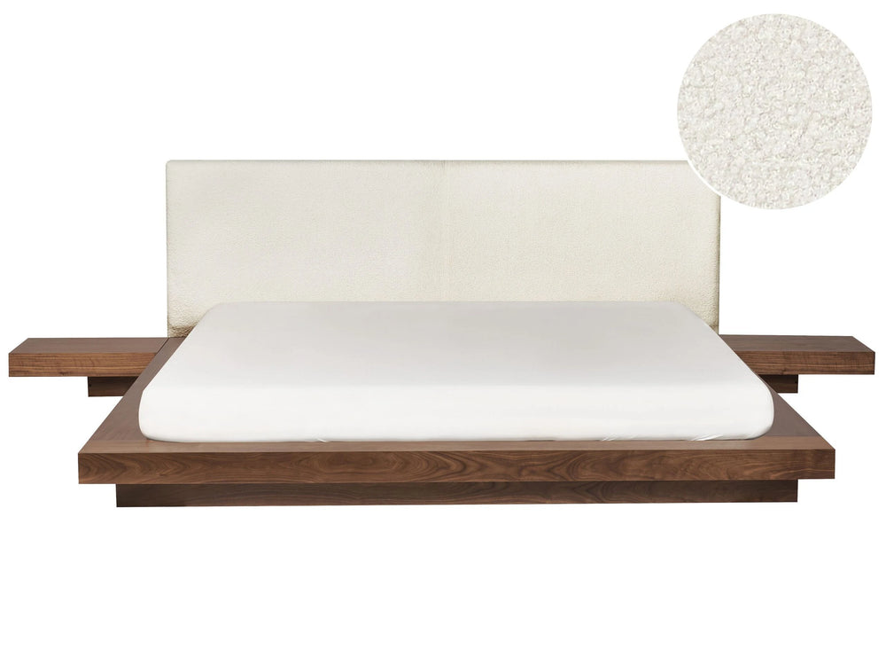 Japan Style Water Bed Brown Ash Wood Boucle Headboard EU Super King Size 6ft Wooden Frame Low Profile with Mattress Bedroom Beliani