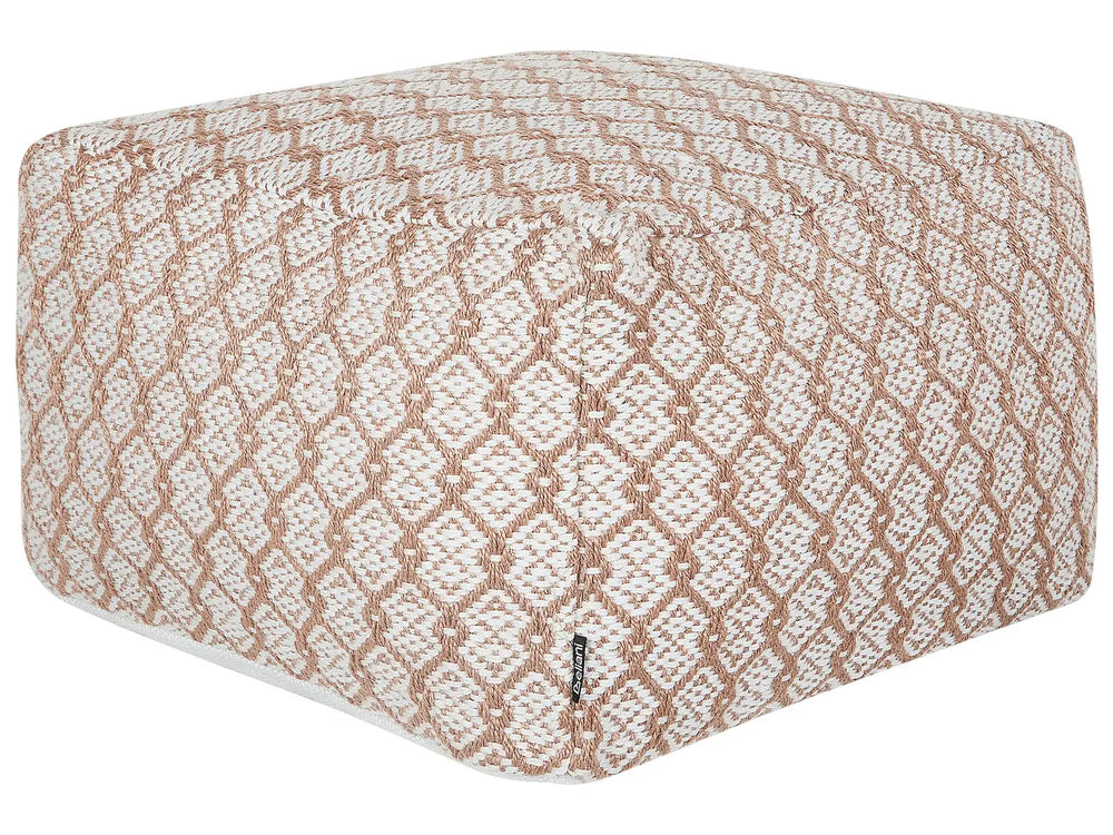 Garden Pouf Beige and White Synthetic Material Square 50 x 50 x 30 cm Outdoor Ottoman Handwoven Boho Style Beliani