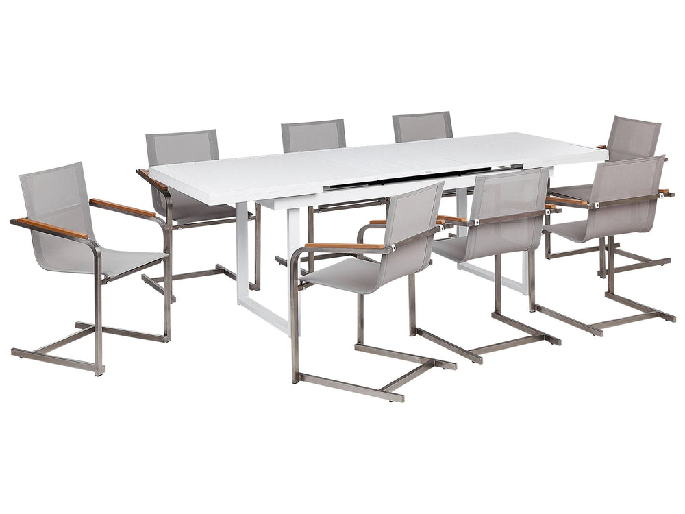8 Seater Garden Dining Set White and Beige Aluminium Stainless Steel Outdoor Furniture Modern Beliani