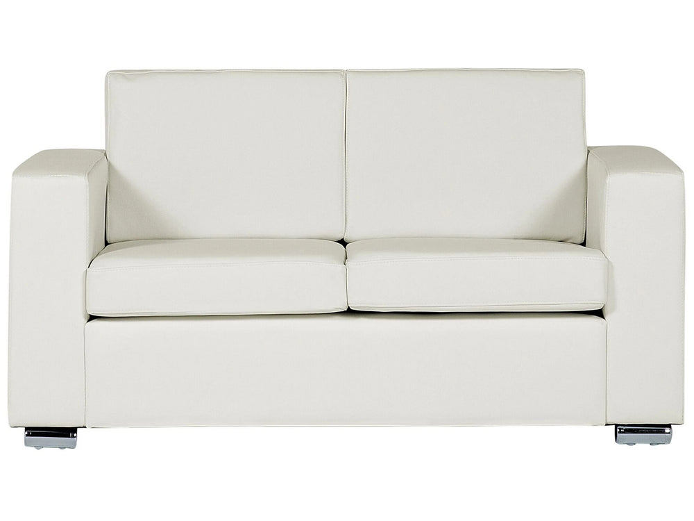 2 Seater Sofa Loveseat White Split Leather Upholstery Chromed Legs Retro Design Beliani