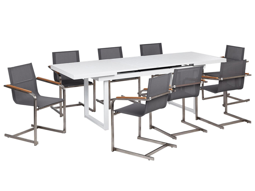 8 Seater Garden Dining Set White and Grey Aluminium Stainless Steel Outdoor Furniture Modern Beliani