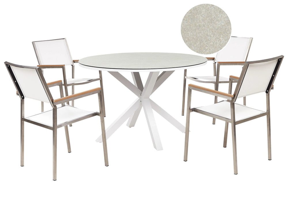 Garden Dining Set White Aluminium Stainless Steel Ceramic Glass Table Top 4 Seater Outdoor Furniture Modern Beliani