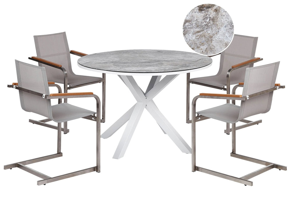 Garden Dining Set White and Grey Aluminium Stainless Steel Ceramic Glass Table Top with Marble Effect 4 Seater Outdoor Furniture Modern Beliani
