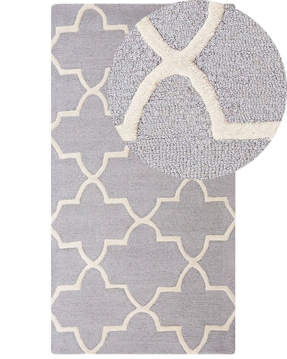 Rug Grey Wool 80 x 150 cm Trellis Quatrefoil Pattern Hand Tufted Oriental Moroccan Clover Beliani