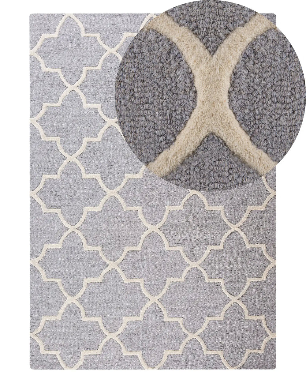 Rug Grey Wool 140 x 200 cm Trellis Quatrefoil Pattern Hand Tufted Oriental Moroccan Clover Beliani