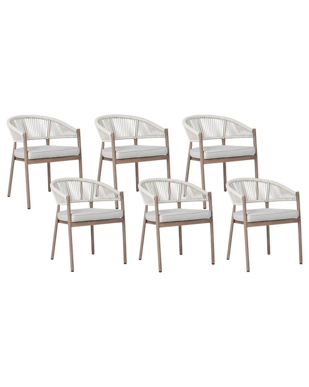 Set of 6 Garden Chairs Dark Wood and Taupe Tone Aluminium Heat Transfer Finish Frame Stackable Outdoor Patio Modern Beliani