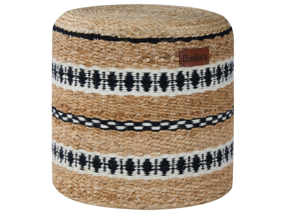 Pouffe Beige Jute and Wool EPS Filling Ottoman Footstool Living Room Boho Style Beliani