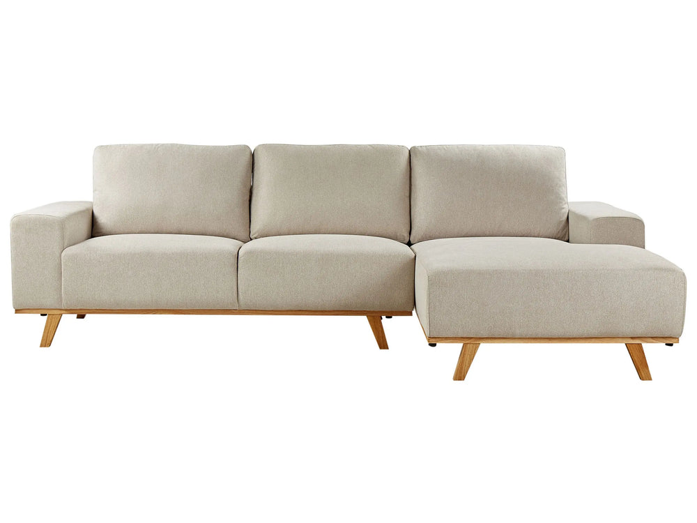 Corner Sofa Beige Upholstery Polyester Fabric Light Wooden Legs Pillow Backrest Modern Design Beliani