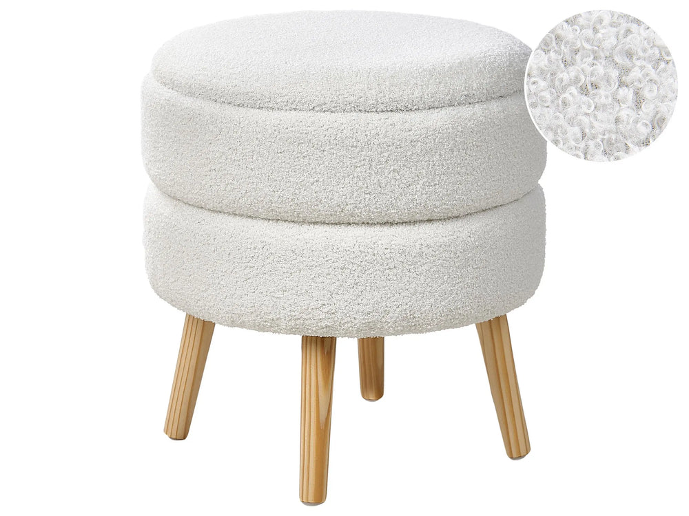 Stool White Boucle Upholstered Wooden Legs Modern Style Beliani