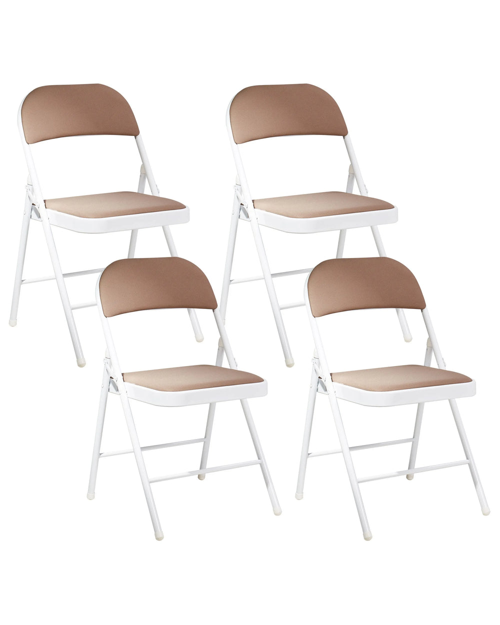 Set of 4 Folding Chairs Beige Metal White Frame Padded Fabric Seat and Backrest Fold Out Seats Beliani