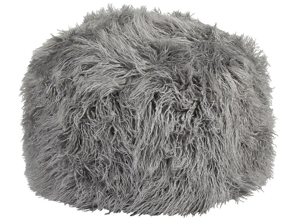 Pouffe Grey EPS Beads Filling Faux Fur Solid Pattern Square Boho Modern Fabric Footstool Beliani